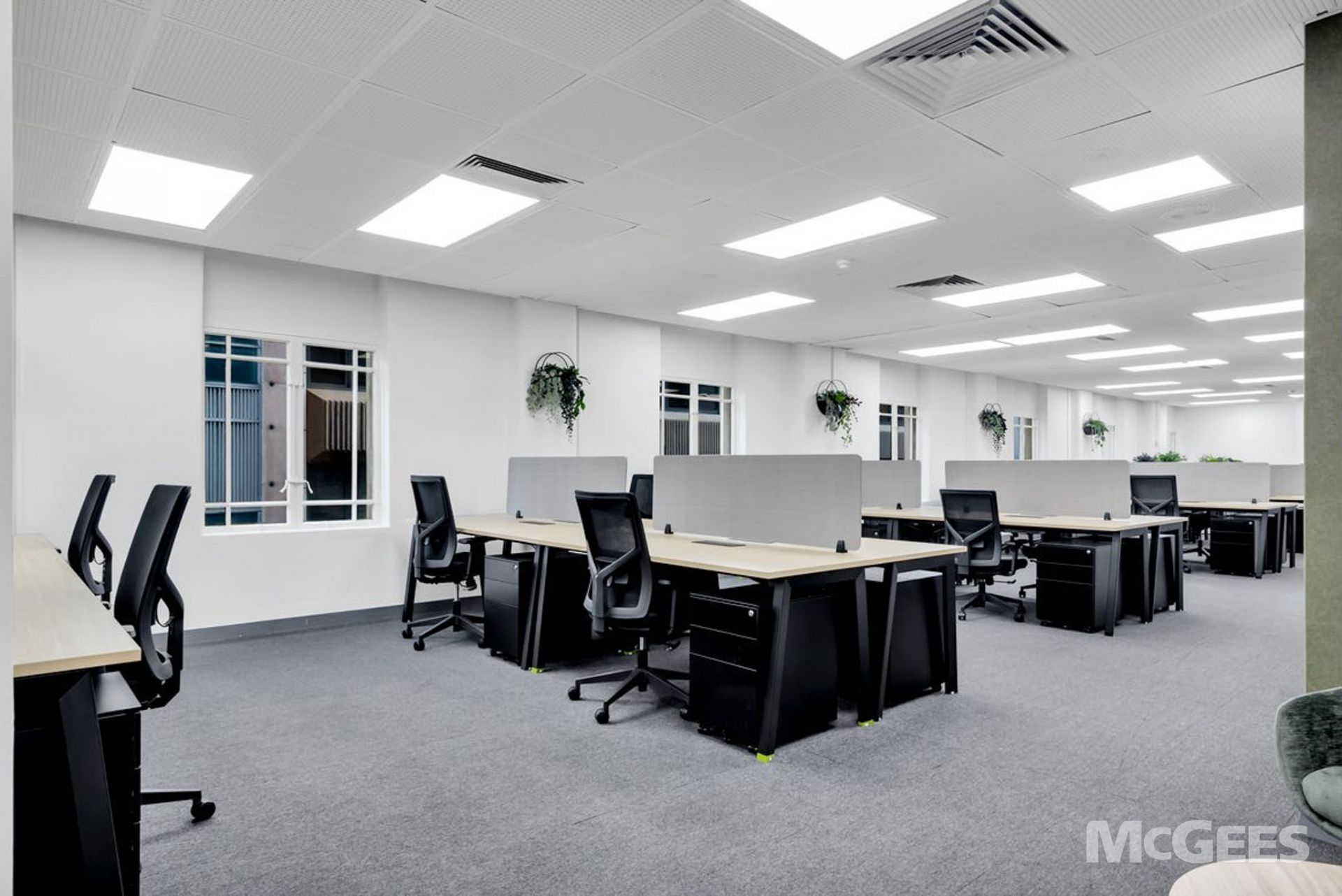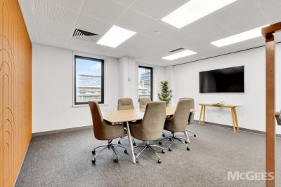 Part Level 6: 135 sqm* fully fitted suite with sit/stand workstations, kitchen, boardroom and meeting room.