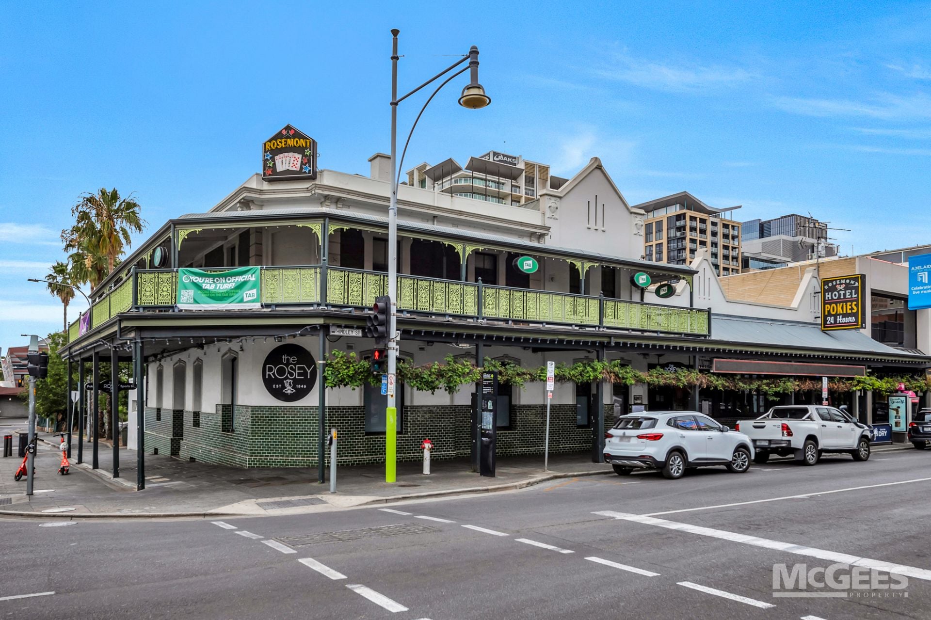 For further details or to arrange an inspection of Rosemont Hotel, 160 Hindley Street, Adelaide contact Grant Clarke of McGees Property (RLA 1722).